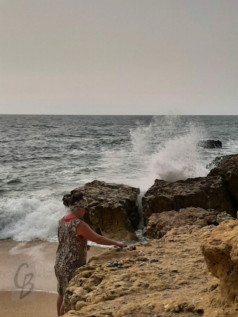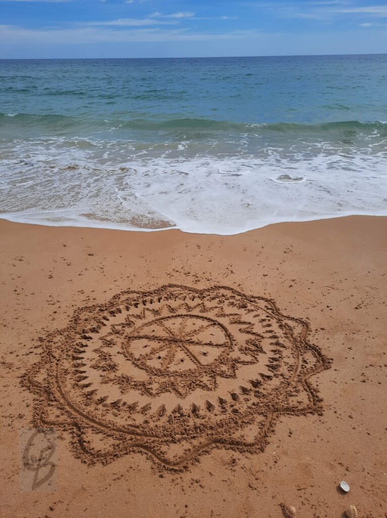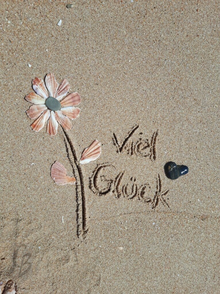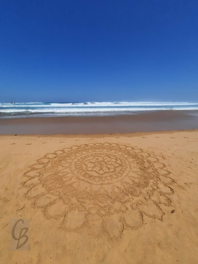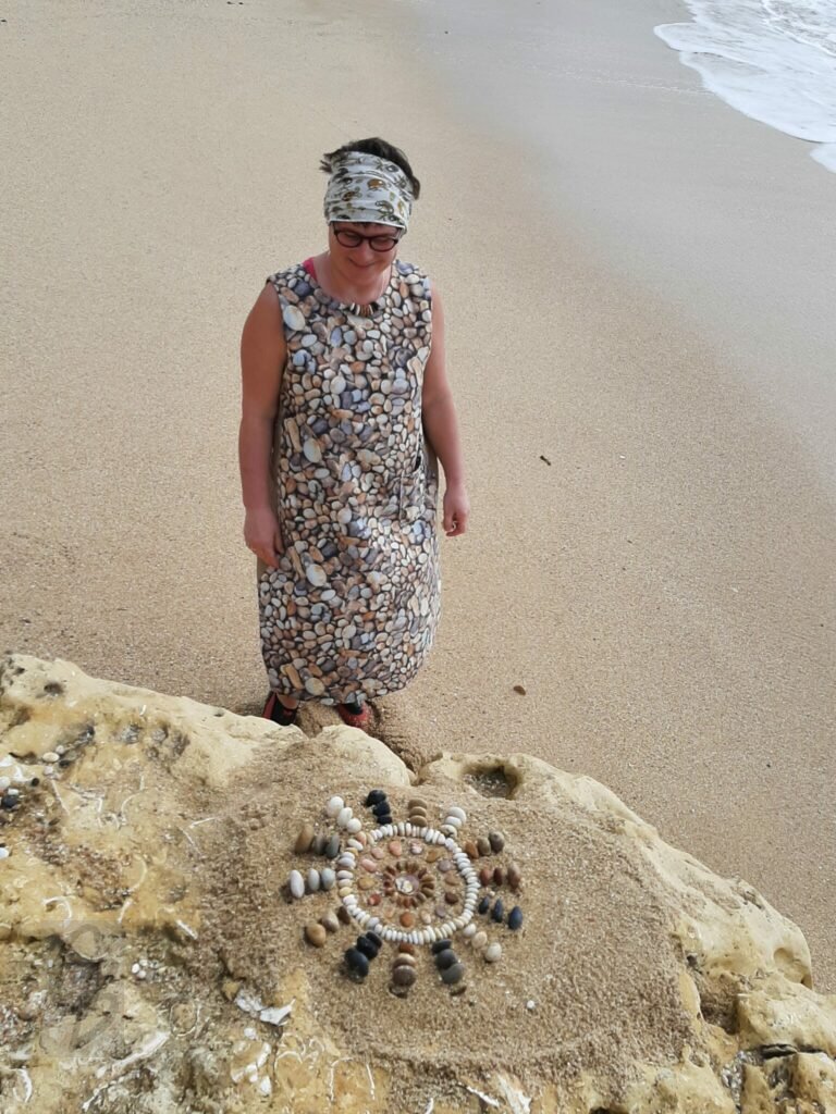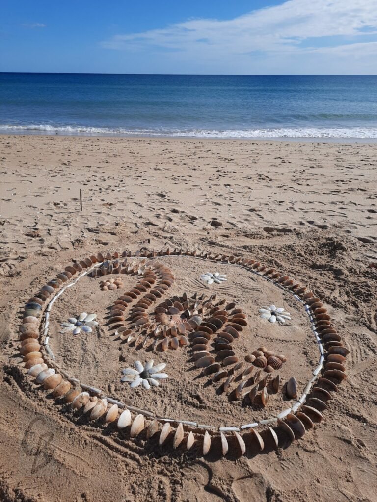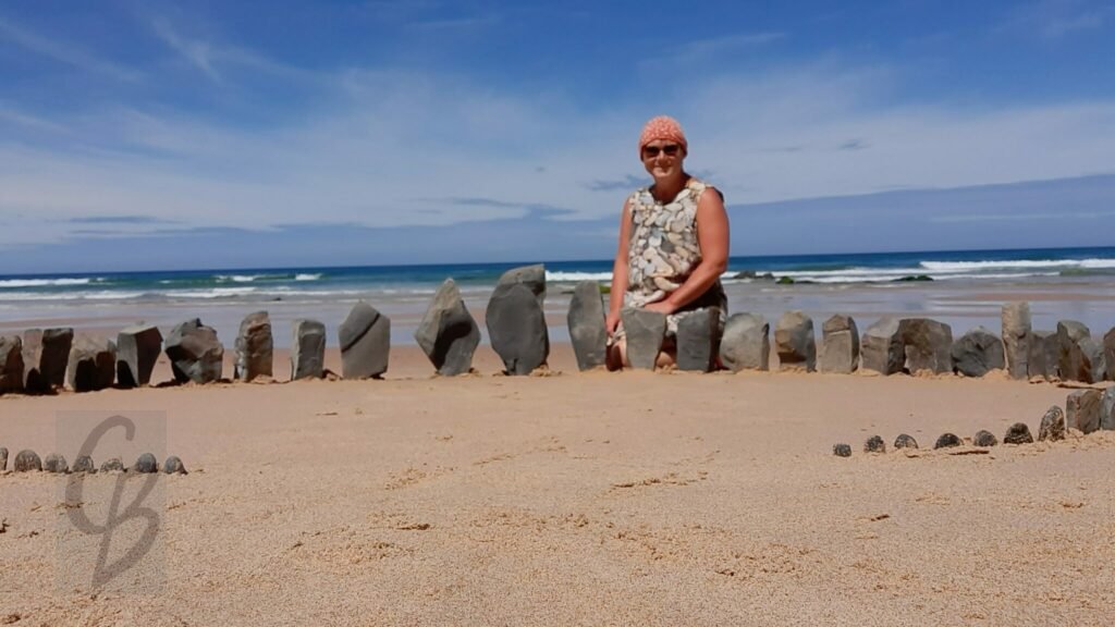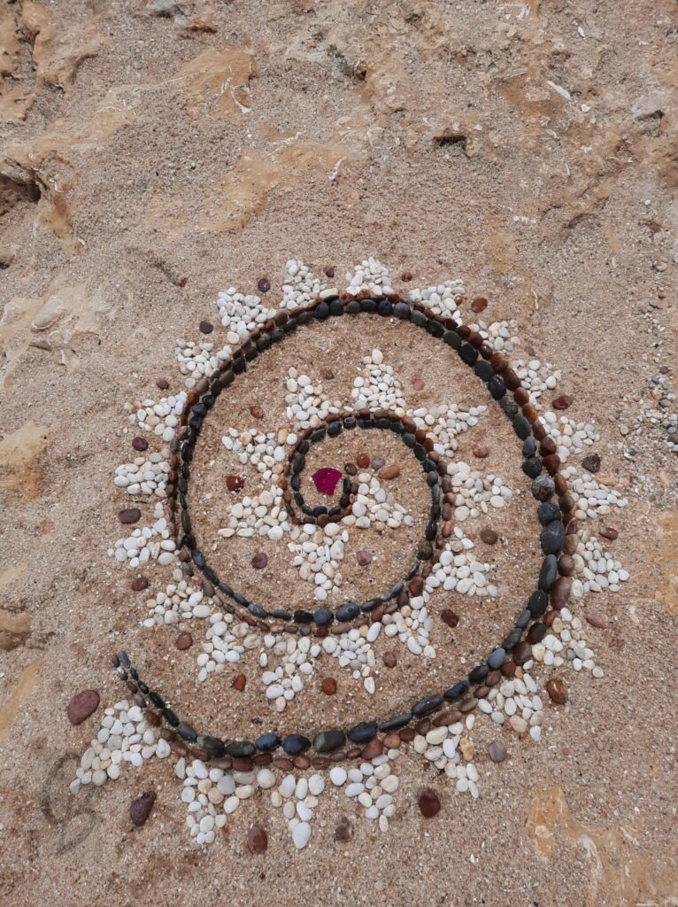 An den Stränden der Algarve liegt das Material zum Bilder „malen“ im Sand. Die Idee sehe ich in den Steinen. An der Westküste Portugals in Monte Clerigo finde ich bei Ebbe die schwarzen Steine mit dem weißen Einschuss, damit lässt es sich leicht zeichnen. Die bunte Farbvielfalt an nur einem Strand beeindruckt und inspiriert mich zu vielen Werken.