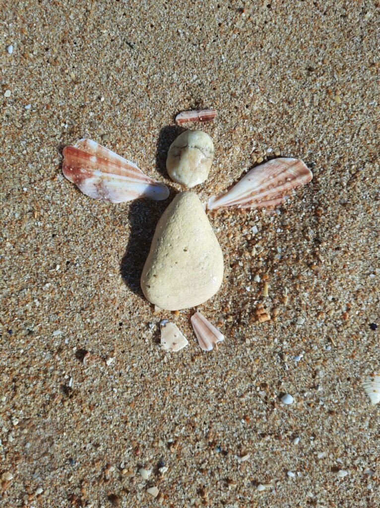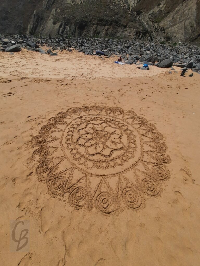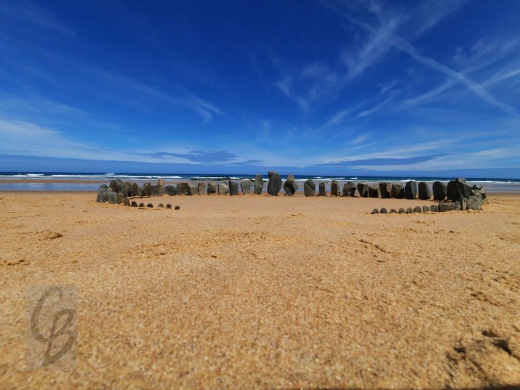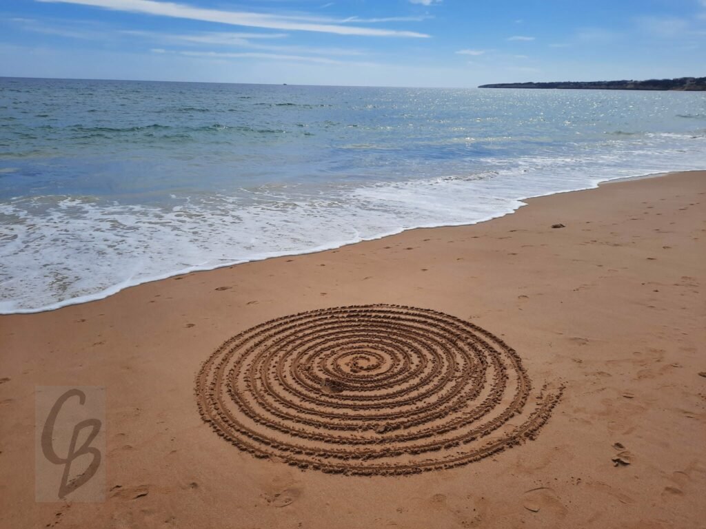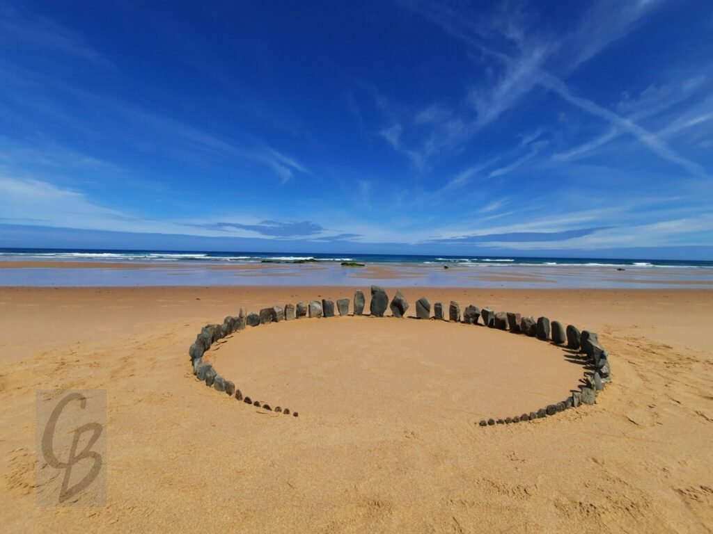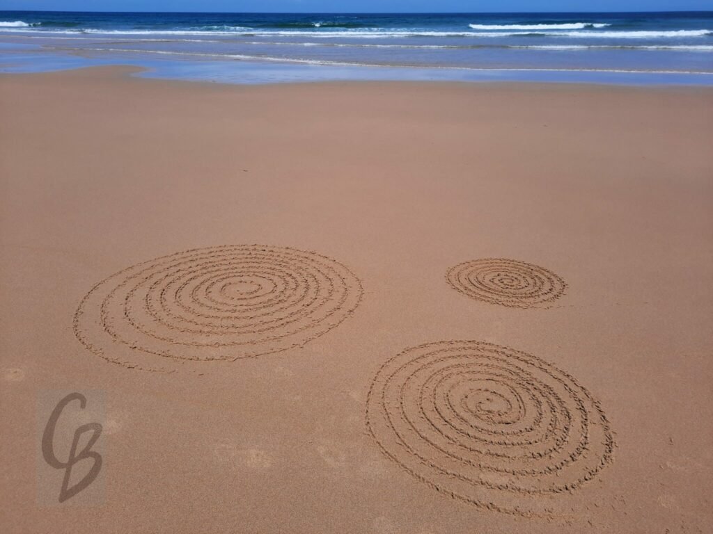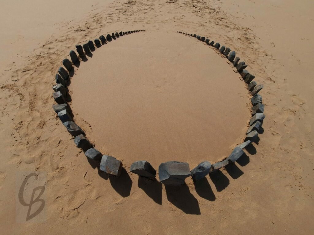 An den Stränden der Algarve liegt das Material zum Bilder „malen“ im Sand. Die Idee sehe ich in den Steinen. An der Westküste Portugals in Monte Clerigo finde ich bei Ebbe die schwarzen Steine mit dem weißen Einschuss, damit lässt es sich leicht zeichnen. Die bunte Farbvielfalt an nur einem Strand beeindruckt und inspiriert mich zu vielen Werken.