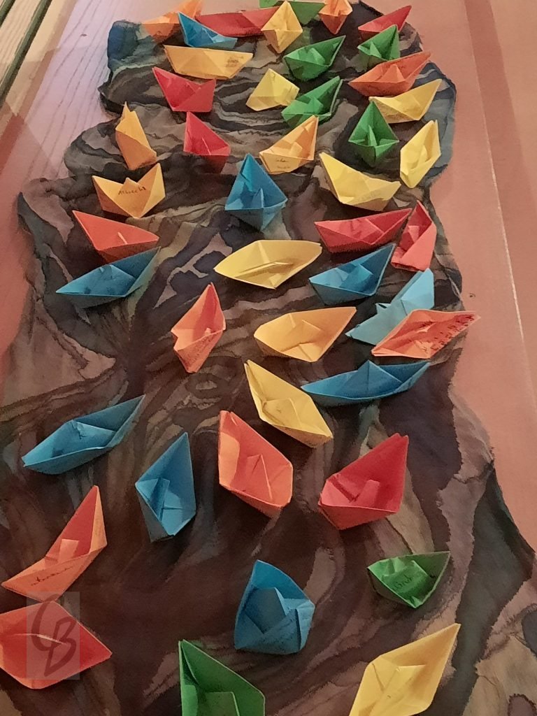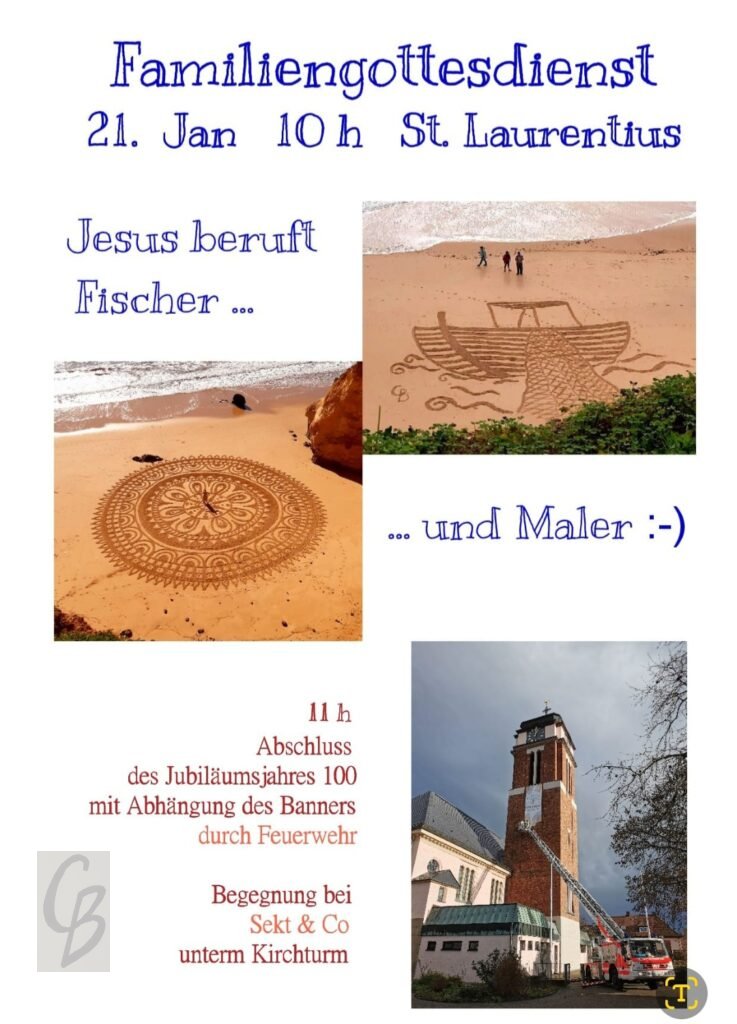 ein Fischerboot an der Algarve gemalt, wirkt als Einladungsplakat in der Gemeinde St. Laurentius/Leider