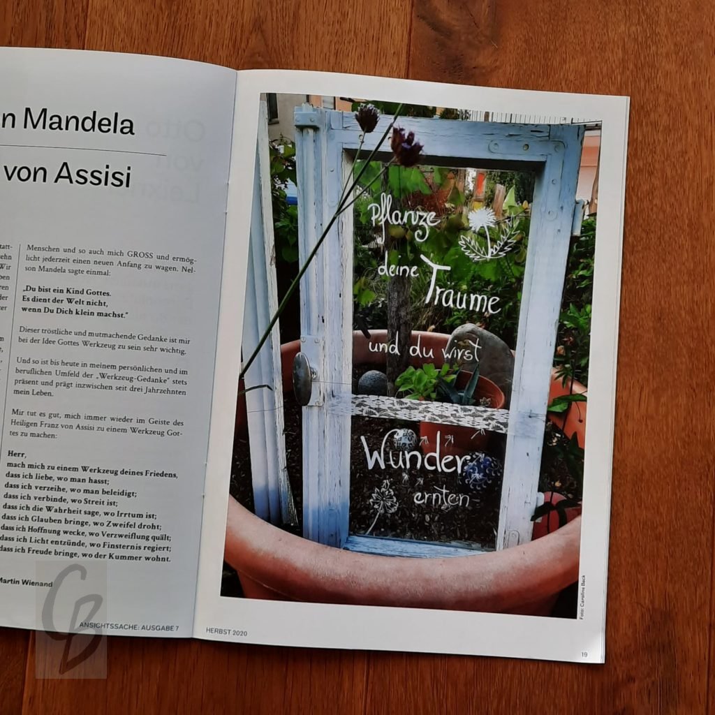 ANSICHTSSACHE das Magazin der Gemeinde Sankt Laurentius Kleinostheim. In der Herbstausgabe 2020 liegt der Schwerpunkt auf Sprichwörter und Redewendungen. In der deutschen Sprache gibt es ungefähr 250.000 davon. Ein Sprichwort besteht durchschnittlich aus sieben Wörtern.