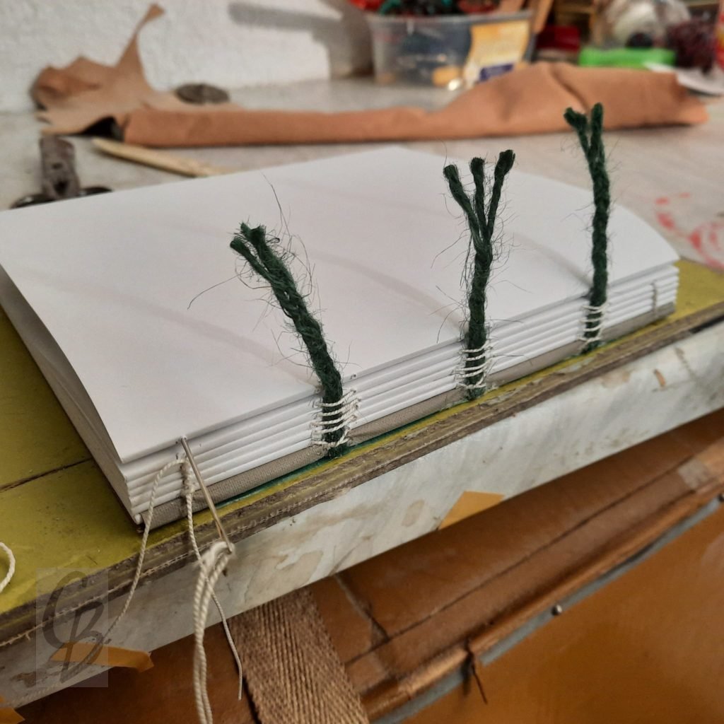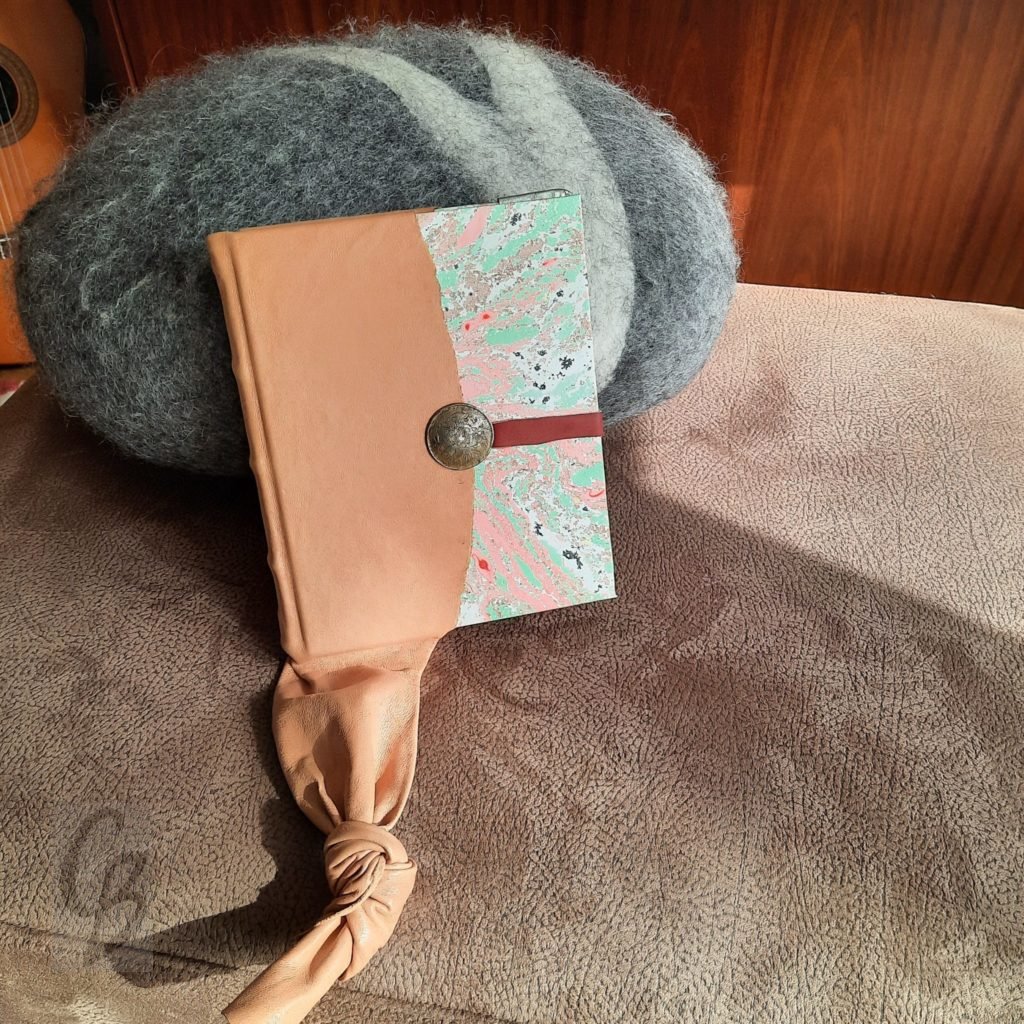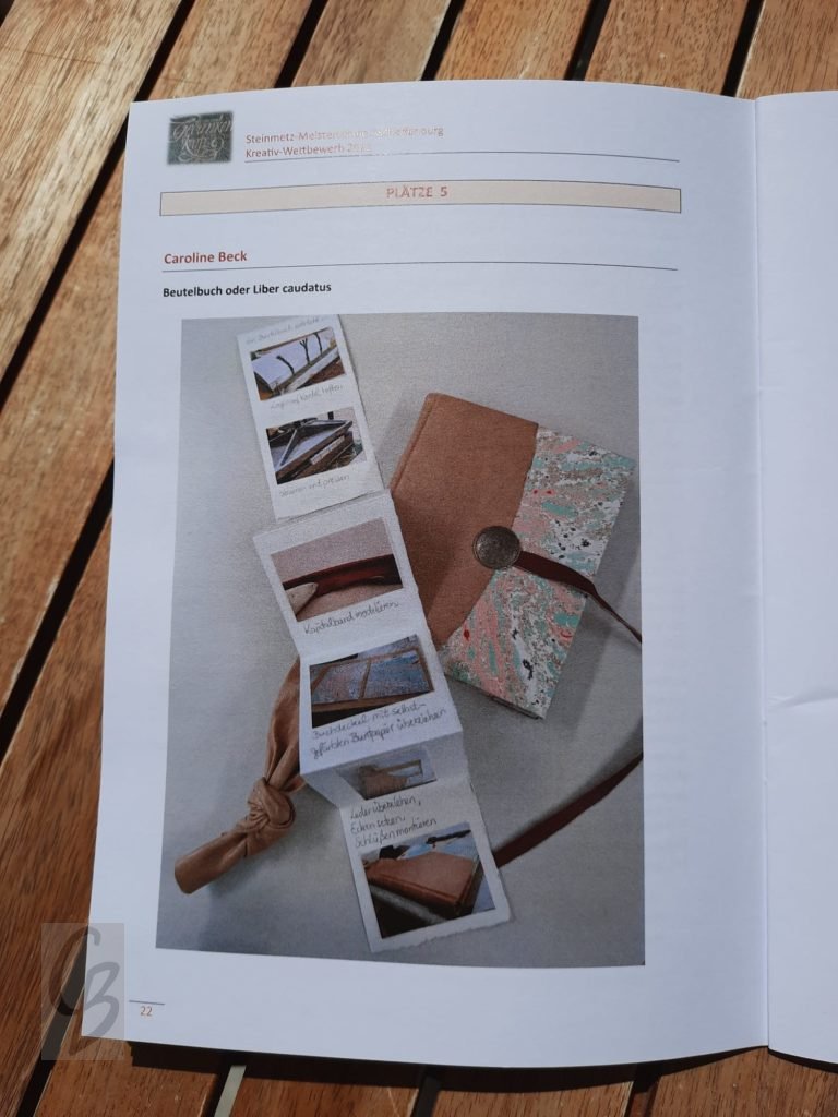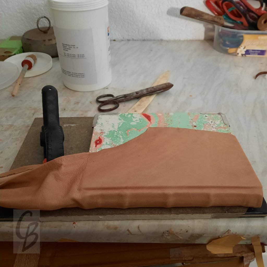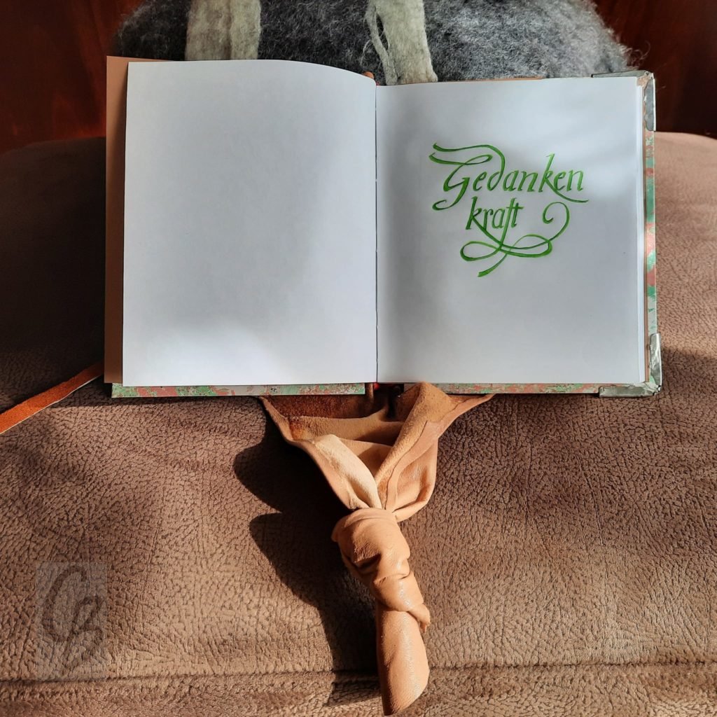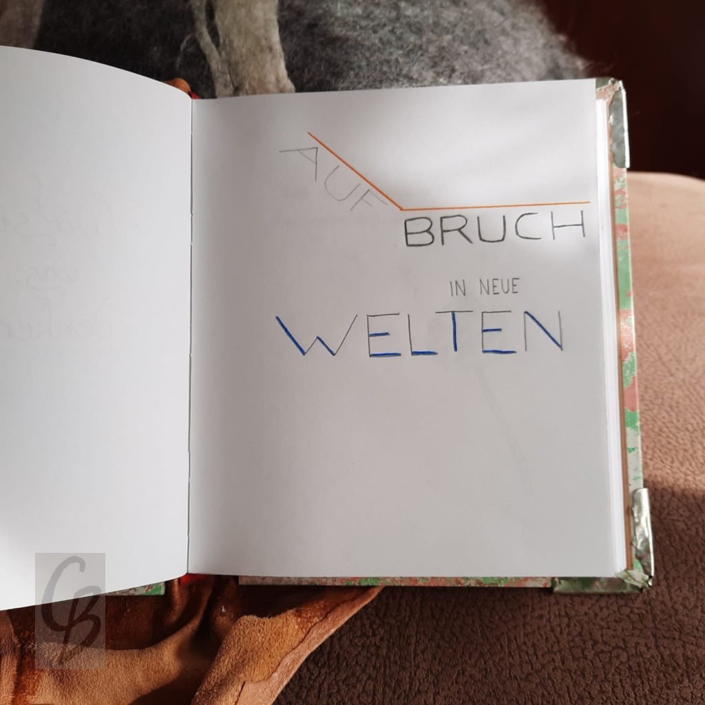 Dazu fiel mir spontan ein Beutelbuch ein ,in dem die Gedanken und Skizzen notiert werden können.Aus Pappe und Leder stellte ich solch ein Buch her und füllte die ersten Seiten mit meinen Gedanken.