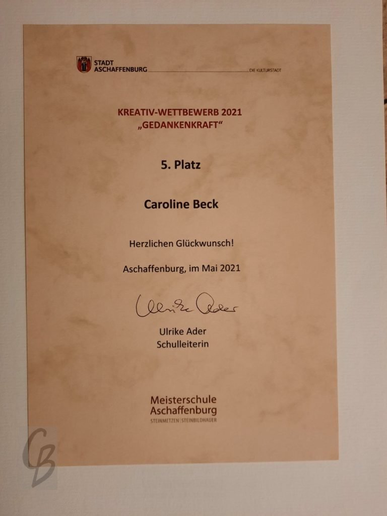 „Gedankenkraft“ so lautete das Jahresmotto der Meisterklasse 2020/21 an der Steinmetzschule Aschaffenburg. Sie riefen die Menschen in der Stadt dazu auf, es ihnen gleich zu tun und ihre Ideen zu diesem Motto gestalterisch umzusetzen.