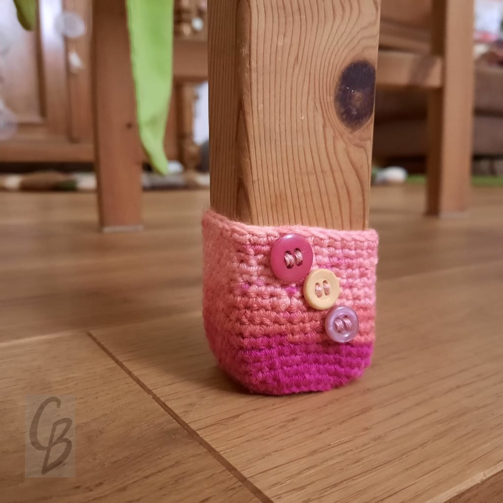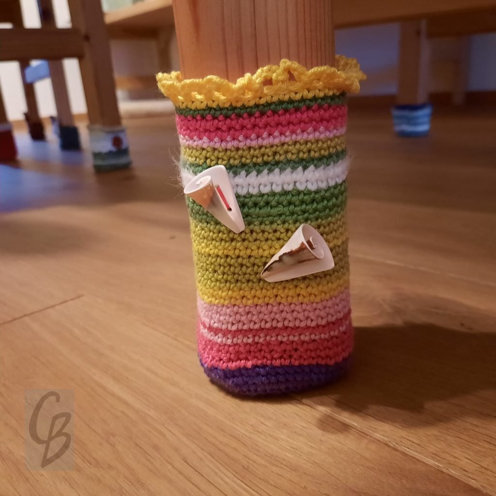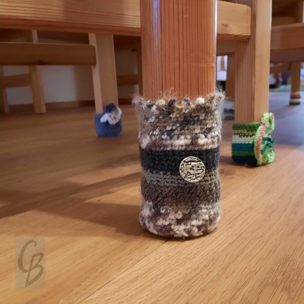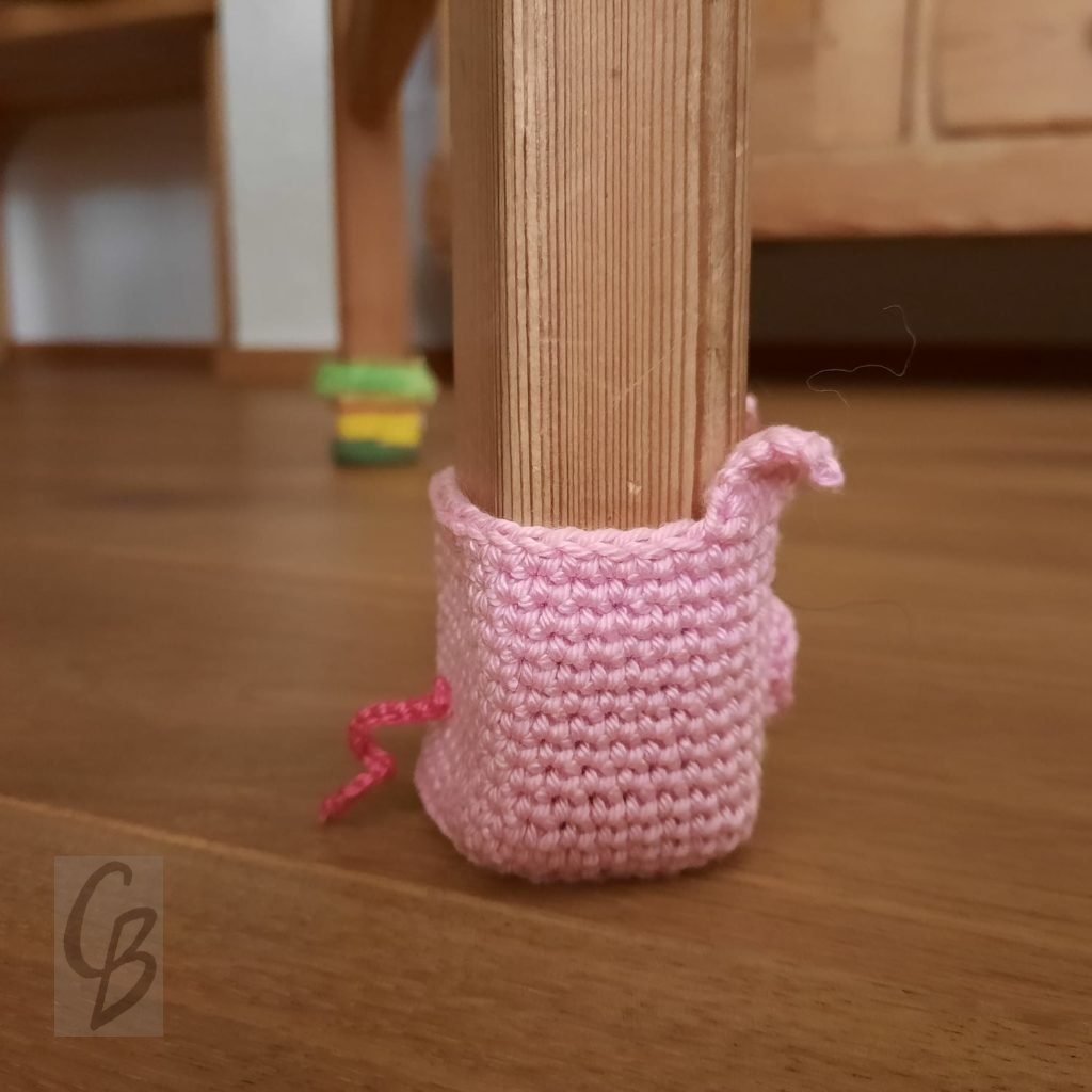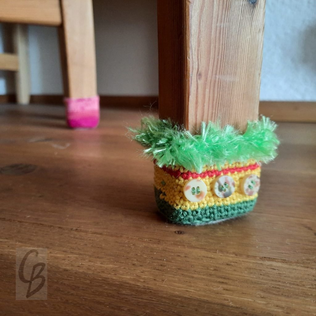 Der Klavierstuhl bekam einen weichen Häkelüberzug und kleine Söckchen