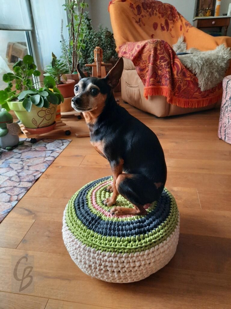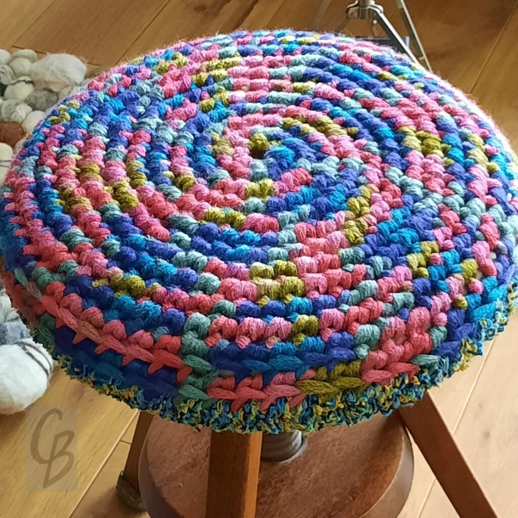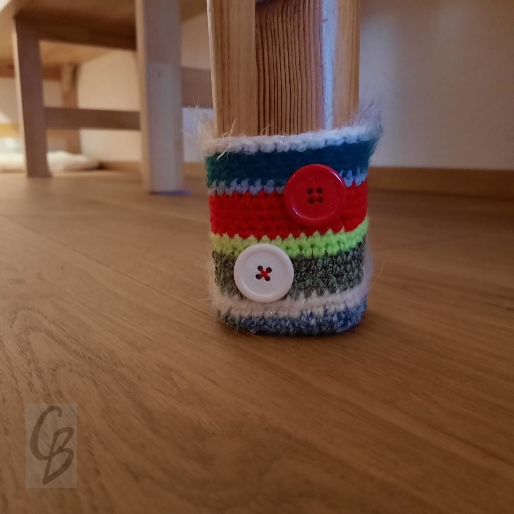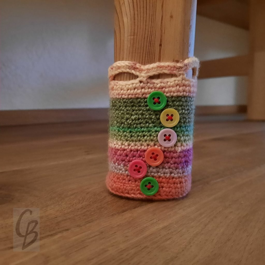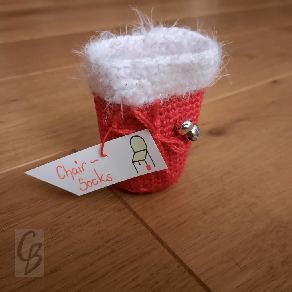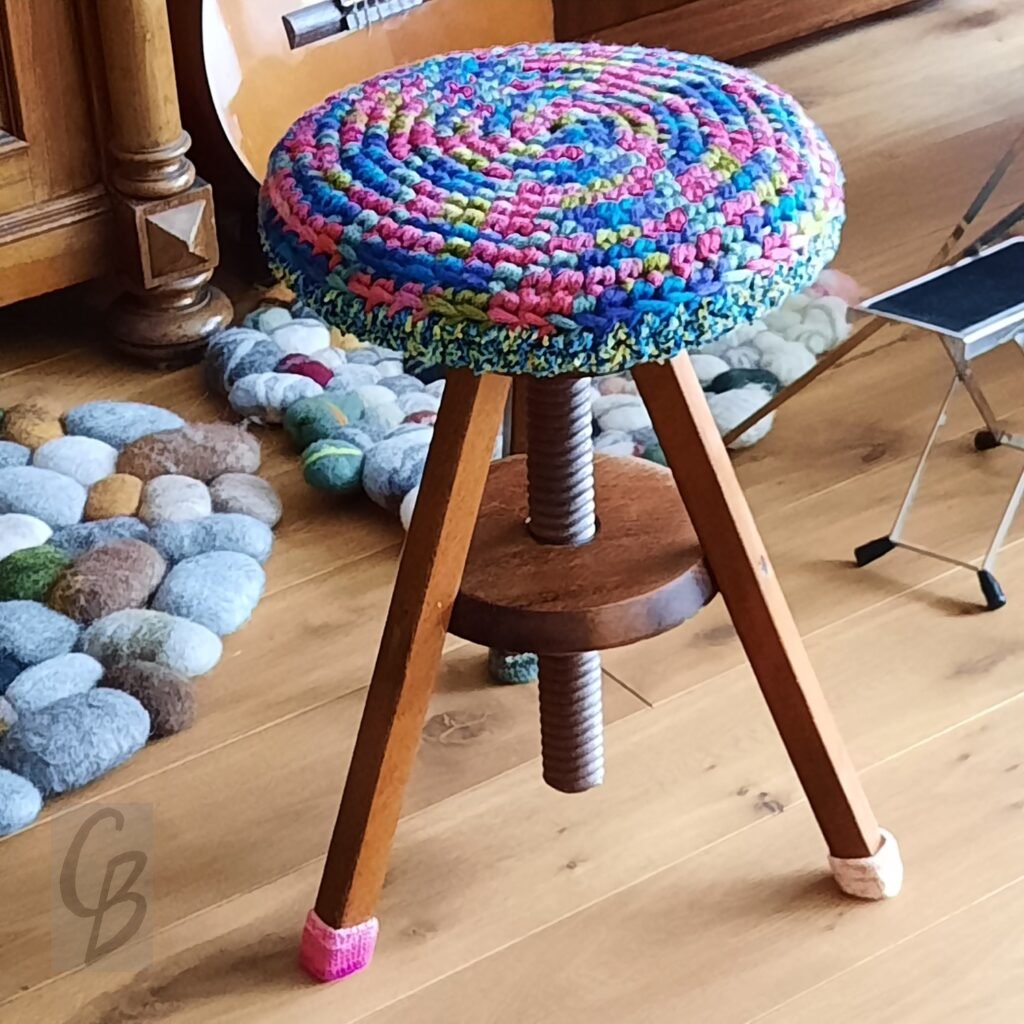 Der Klavierstuhl bekam einen weichen Häkelüberzug und kleine Söckchen