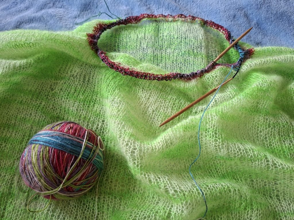 Zwischendurch ein Hauch von Apfelgrün getrickt, Mohair und Seide