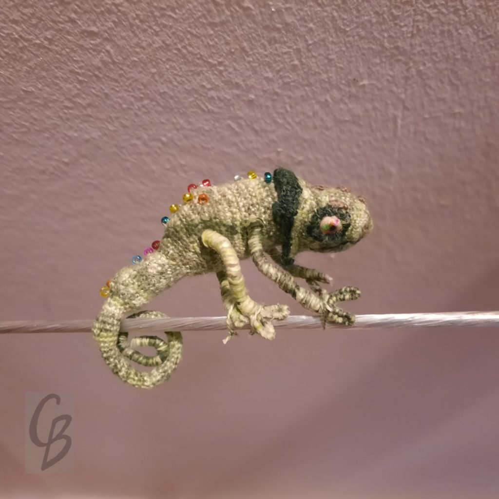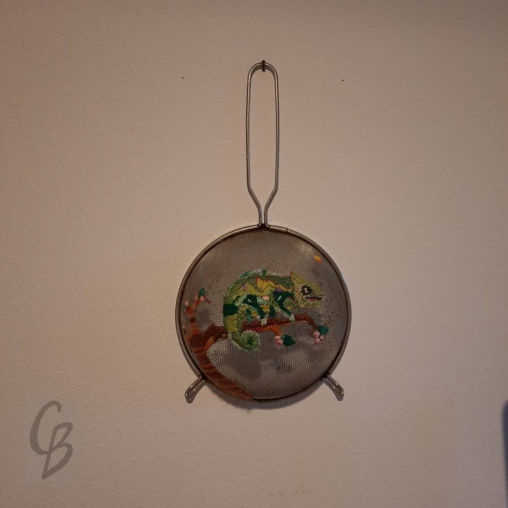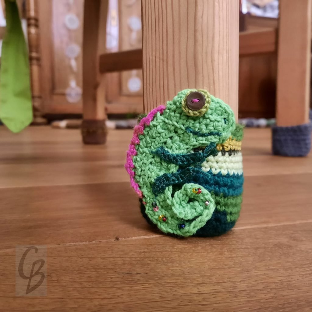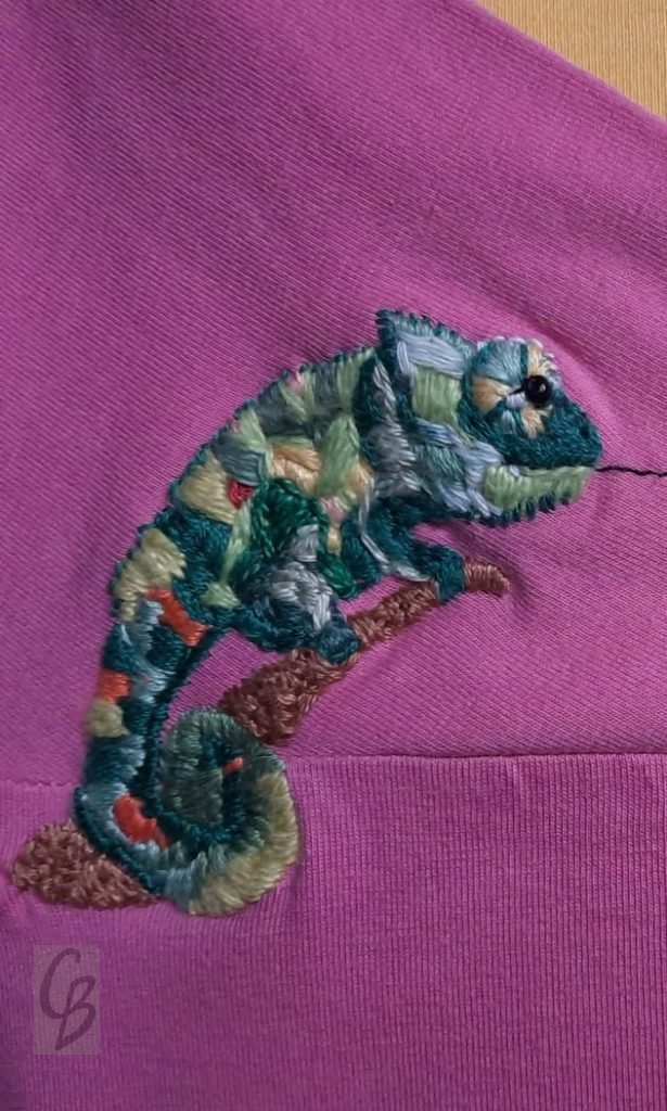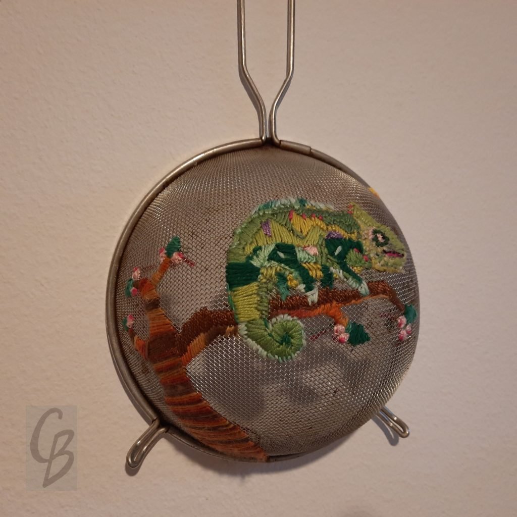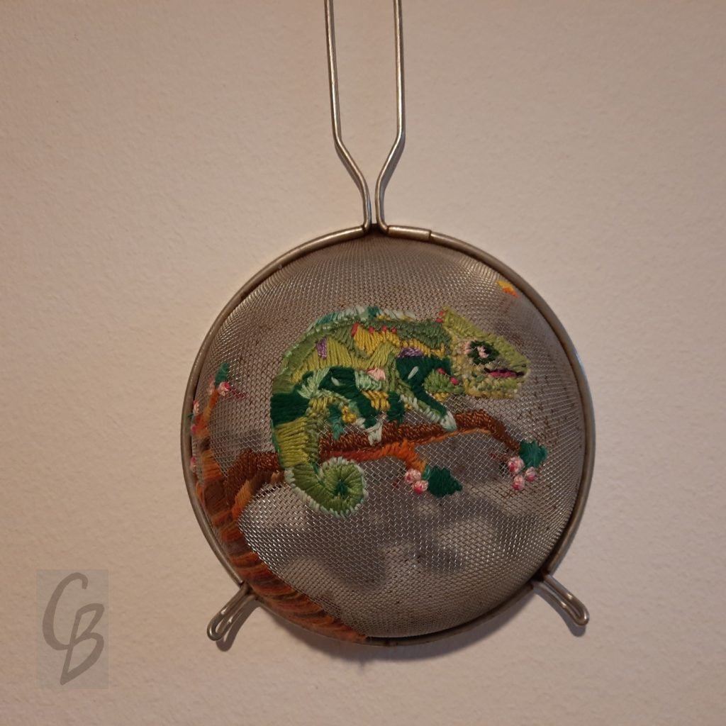 aus feinen Kreuzstichen wächst ein Chamäleon