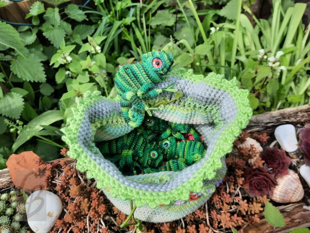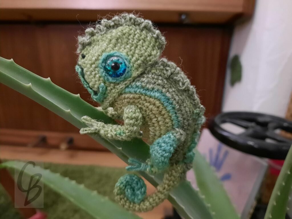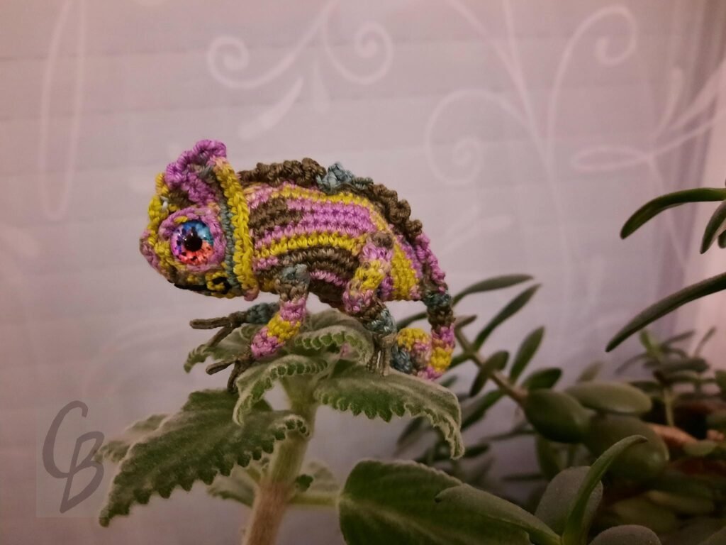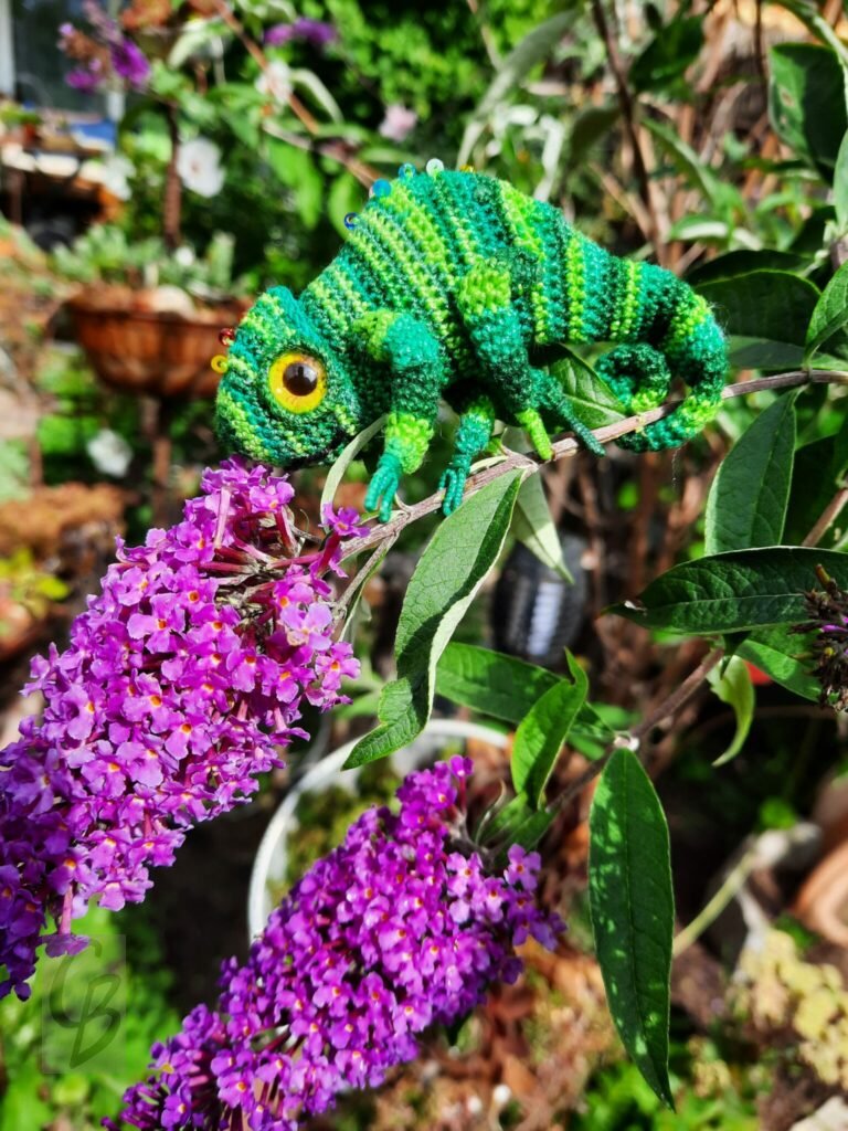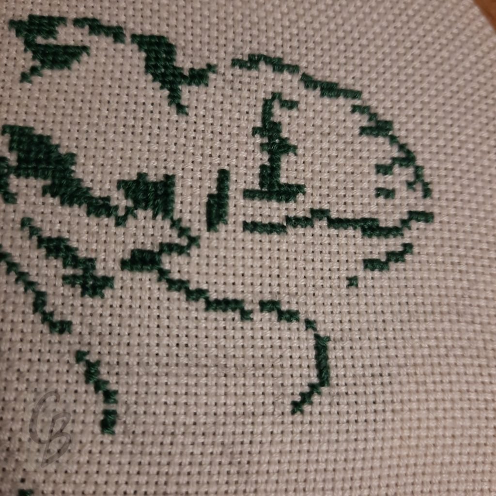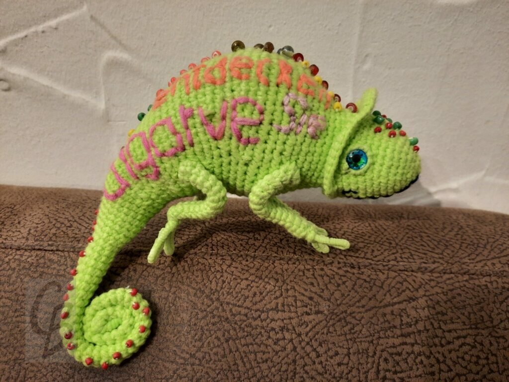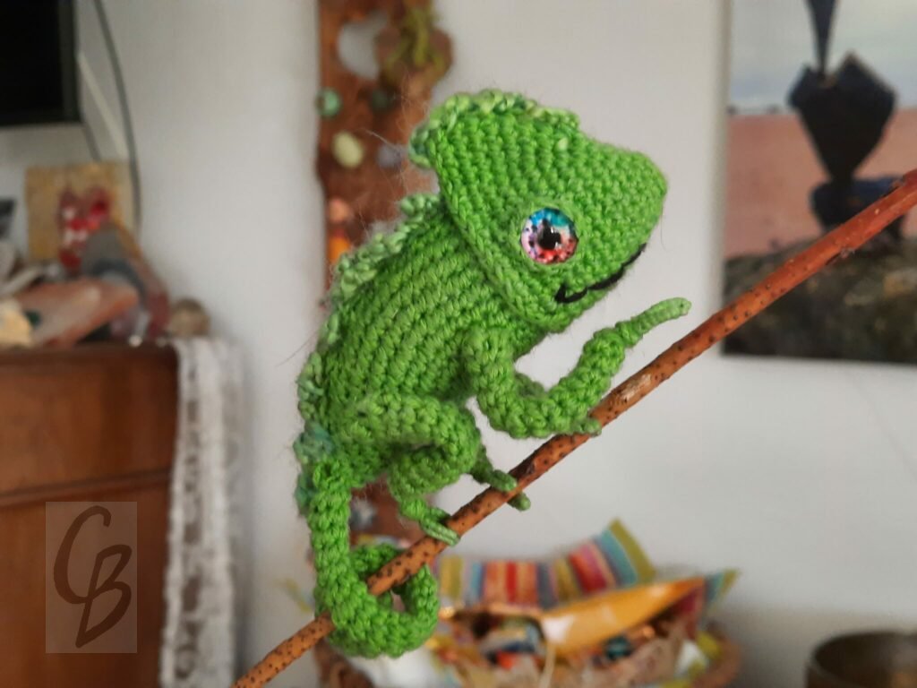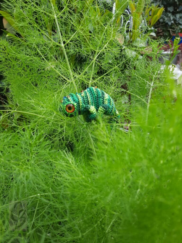 aus feinen Kreuzstichen wächst ein Chamäleon