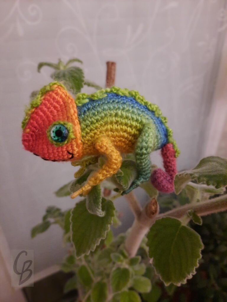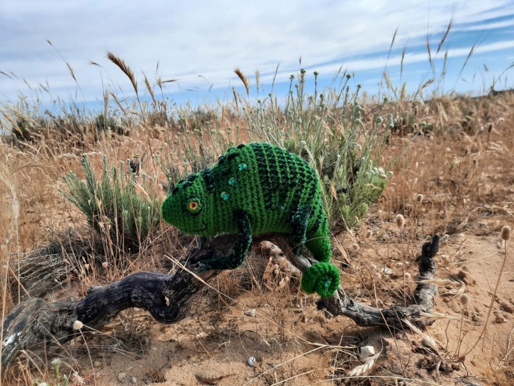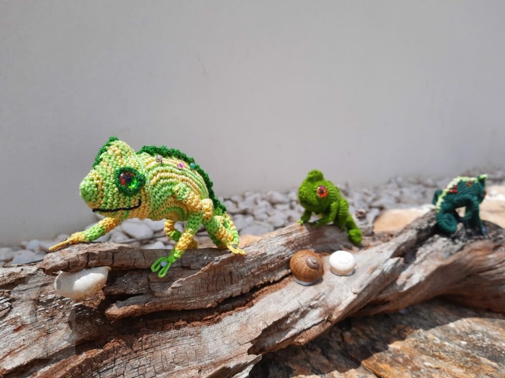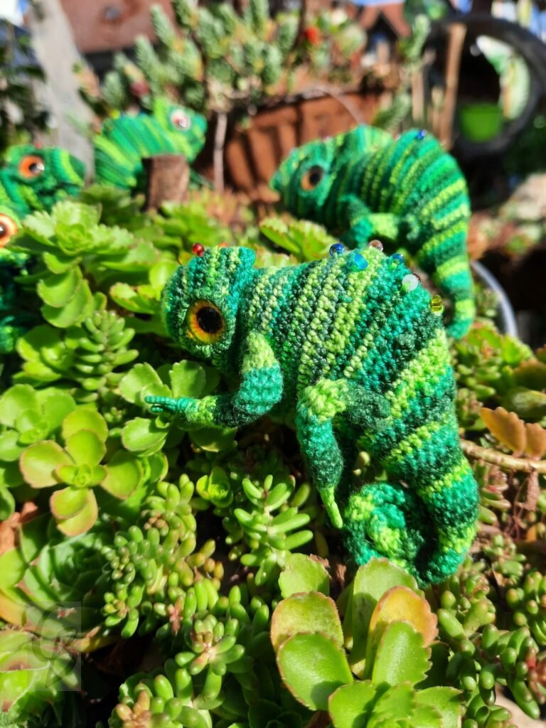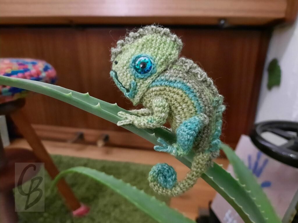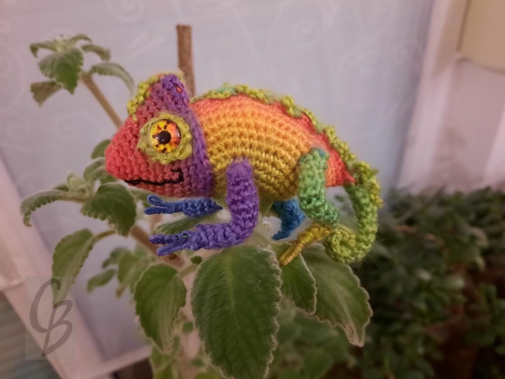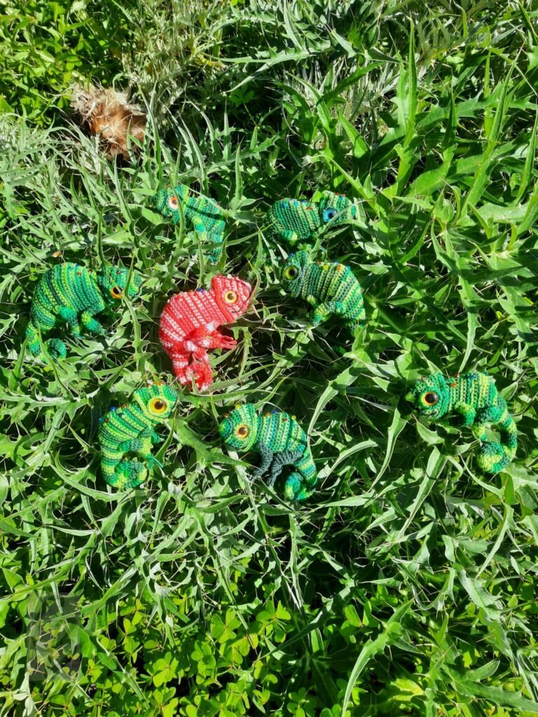 aus feinen Kreuzstichen wächst ein Chamäleon