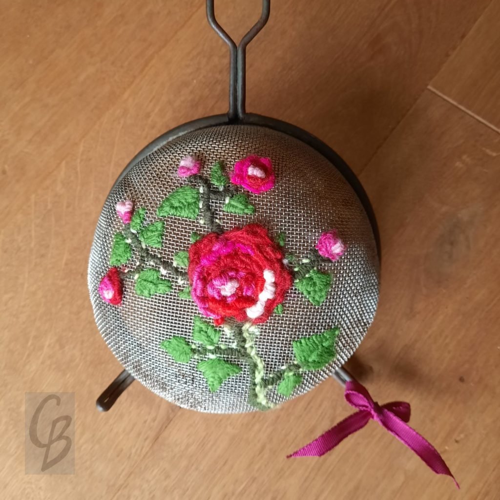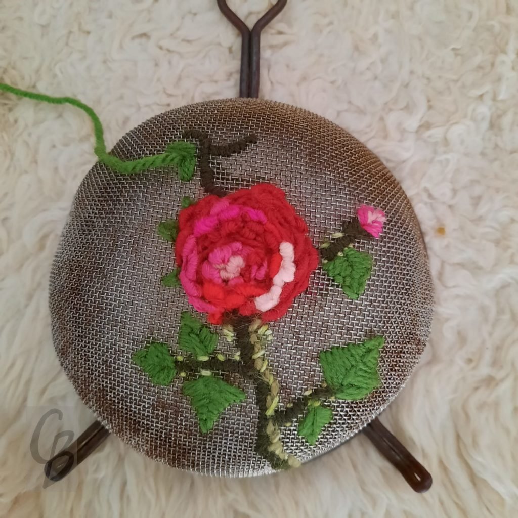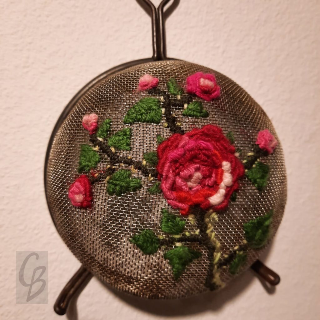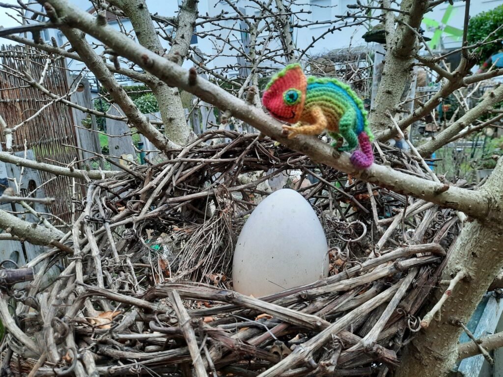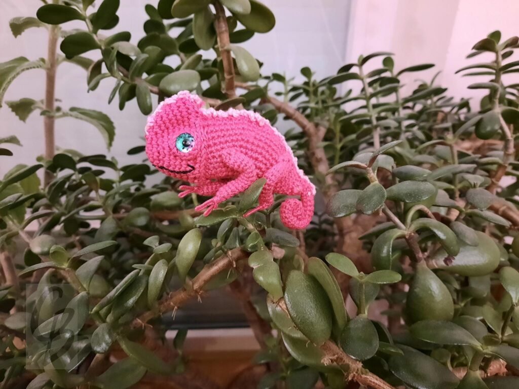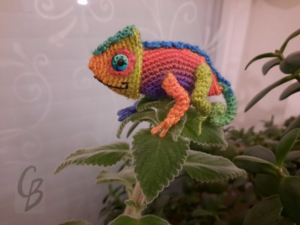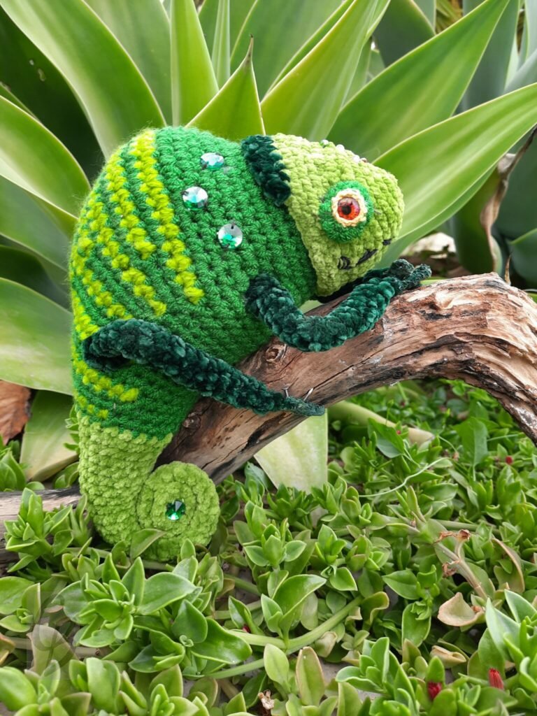 aus feinen Kreuzstichen wächst ein Chamäleon