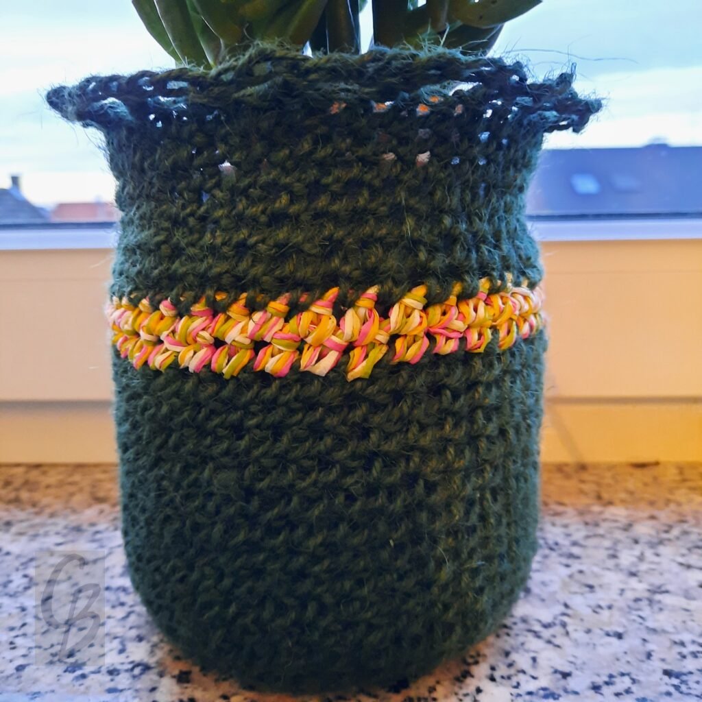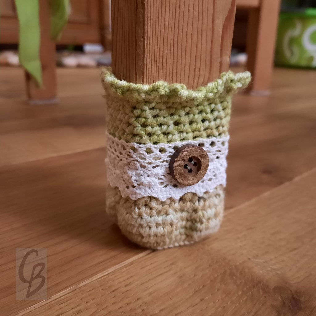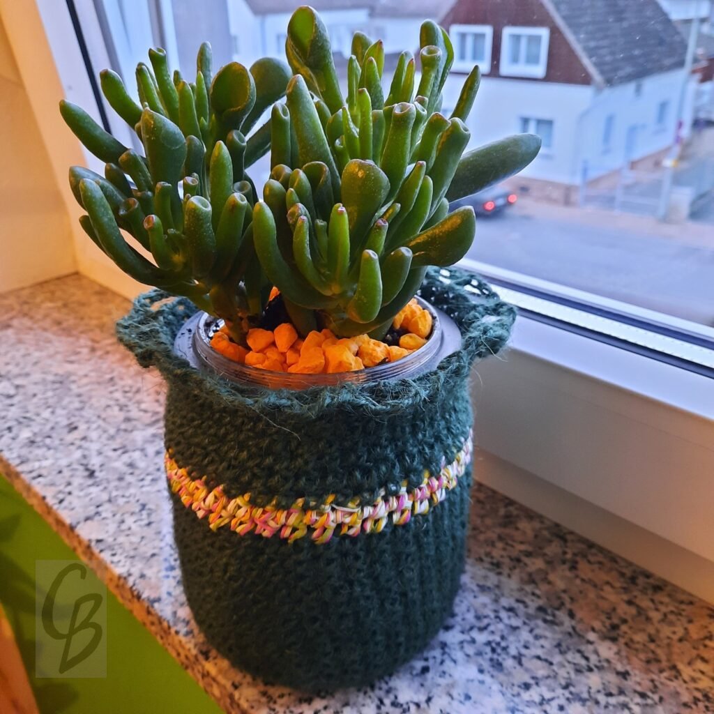aus grüner Paketschnur einen Mantel für ein Einmachglas häkeln und bepflanzen…