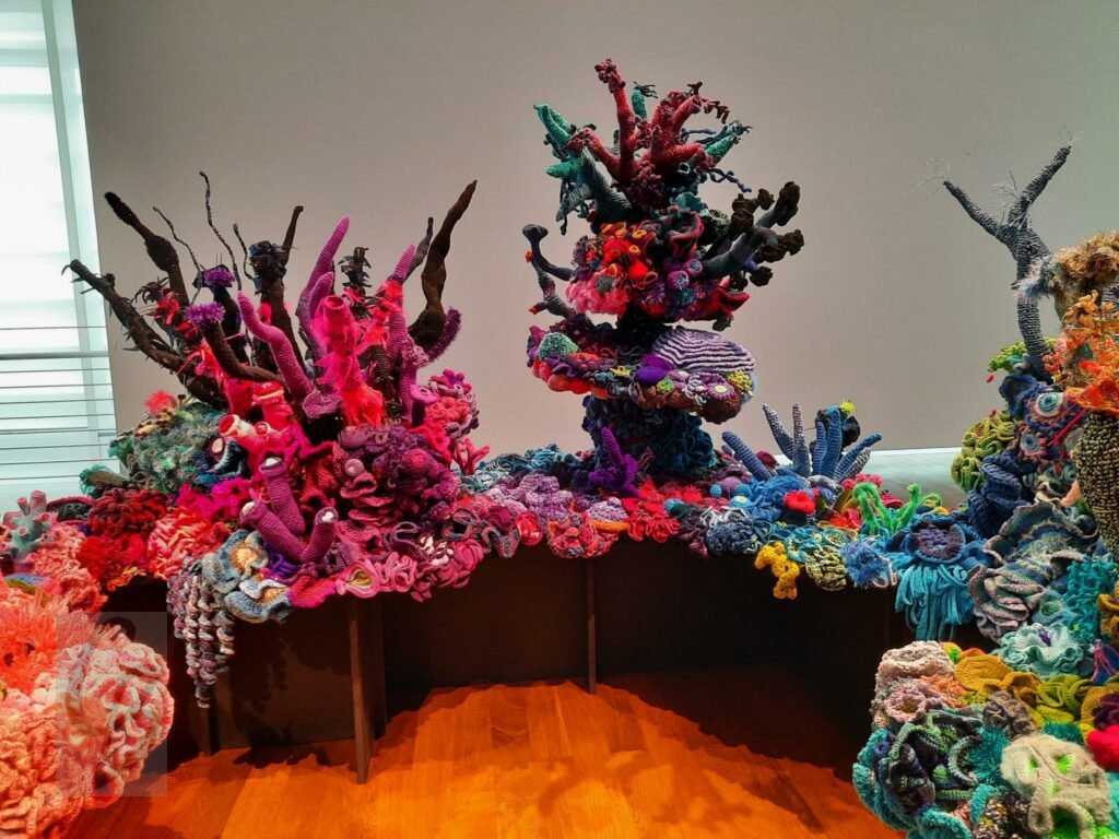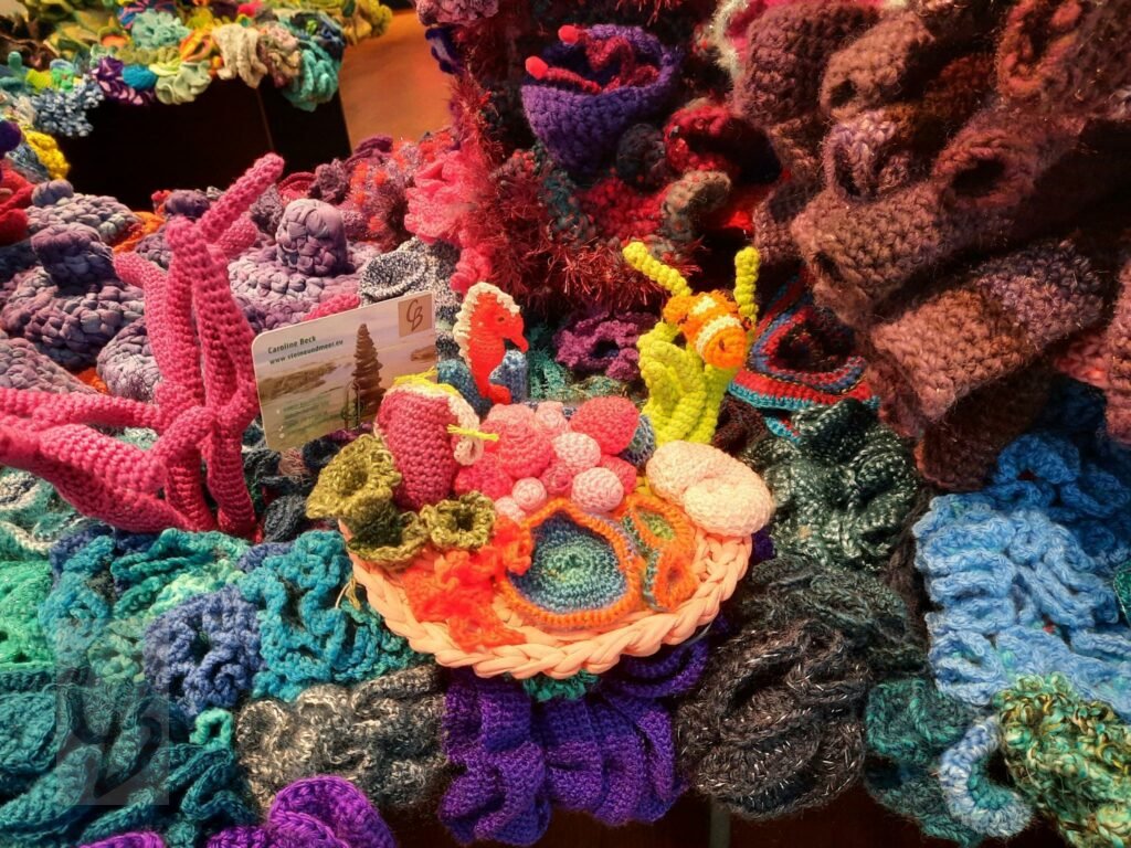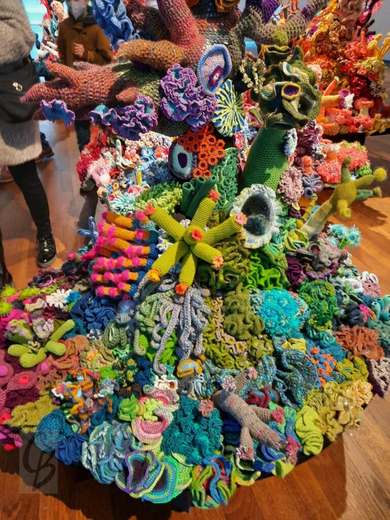 Wert und Wandel der Korallen – Margaret und Christine Wertheim wollen mit ihrer Häkelriff-Ausstellung aufmerksam machen, dass überall die Korallen durch globale Erwärmung zu Tode kommen. In Baden Baden im Frieder Burda Museum stellen die Schwestern ihre ersten Häkelkorallen bis hin zu großen Installationswerken aus. Das Obergeschoss verwandelten 4.000 Mitwirkende mit mehr als 40.000 Korallenbeiträge in eine kaleidoskopische Unterwasserwelt. Alle gemeinsam wollen darauf aufmerksam machen ,dass das Leben auf Erden nichts ist, wenn es nicht ineinandergreift.