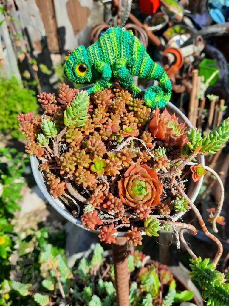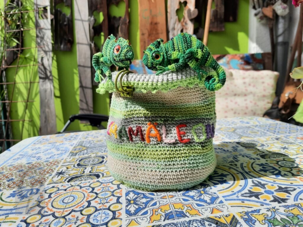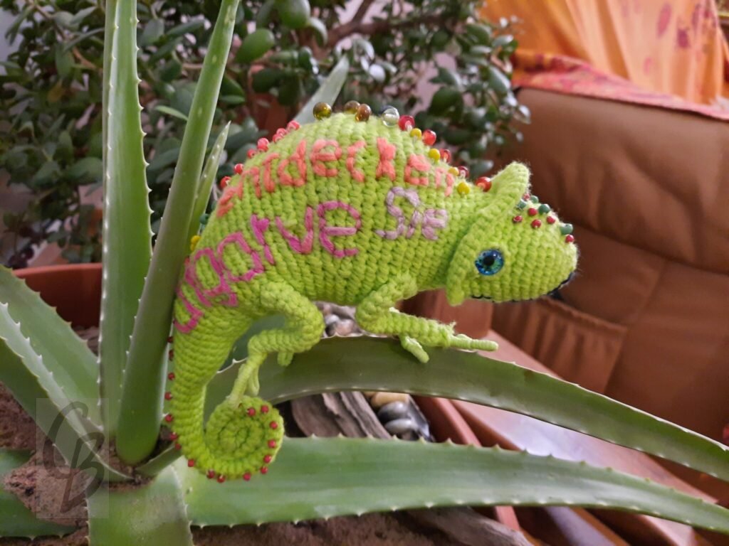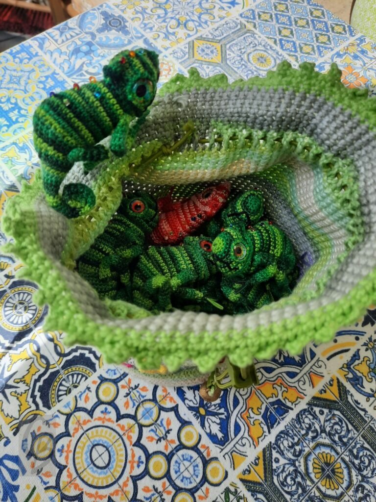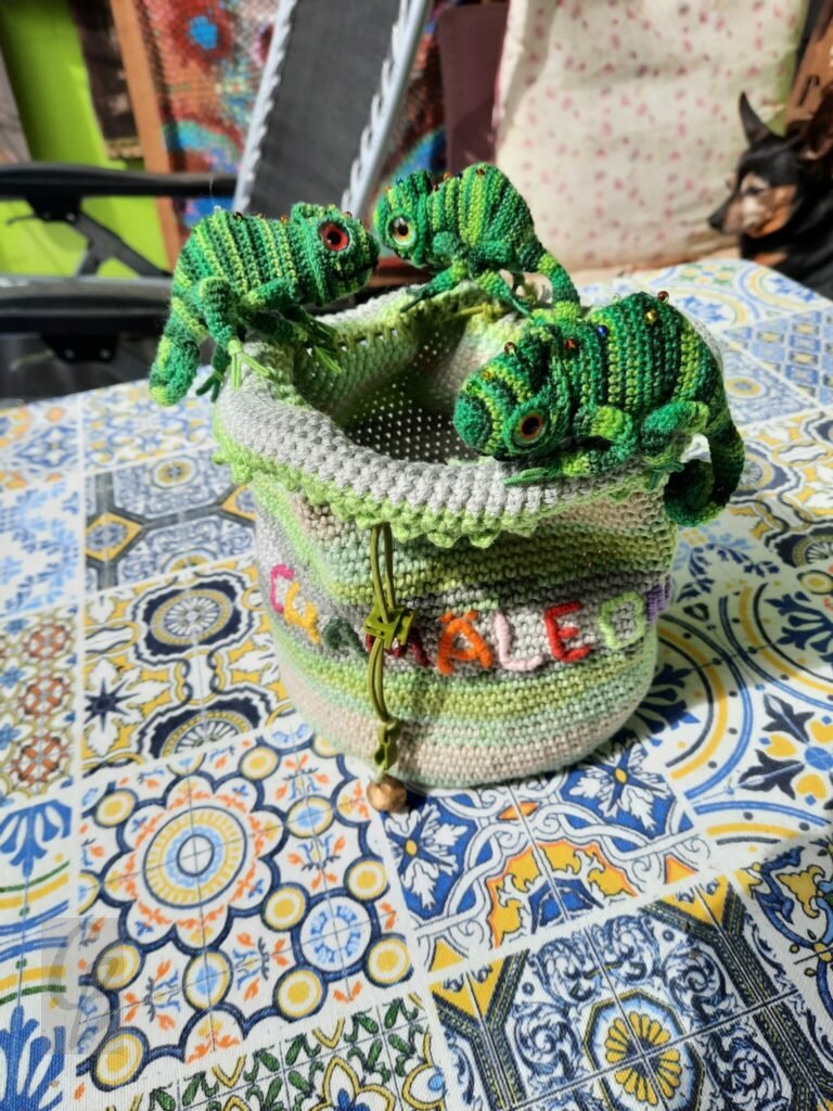 Ich hatte das Chamäleon auf ihrer Tasche gesehen und mehrfach angesetzt zu fragen wer es gefertigt hat….wunderschöne Arbeiten…..