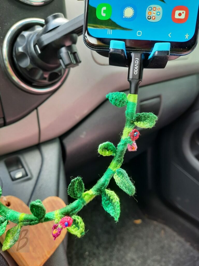 von einer lieben Freundin bekam ich ein umhäkeltes Ladekabel geschenkt….