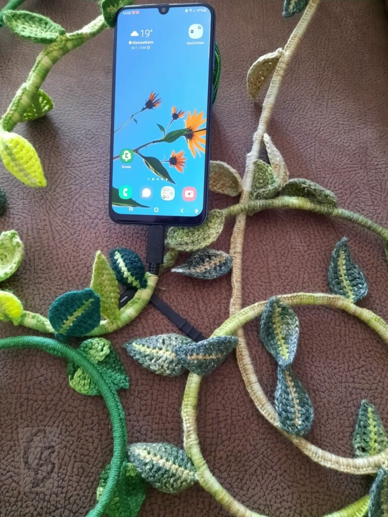 …seitdem „wachsen“ bei mir große und kleine Blätter und Blüten an meinen Handyladekabeln und so manches Chamäleon versteckt sich dazwischen.