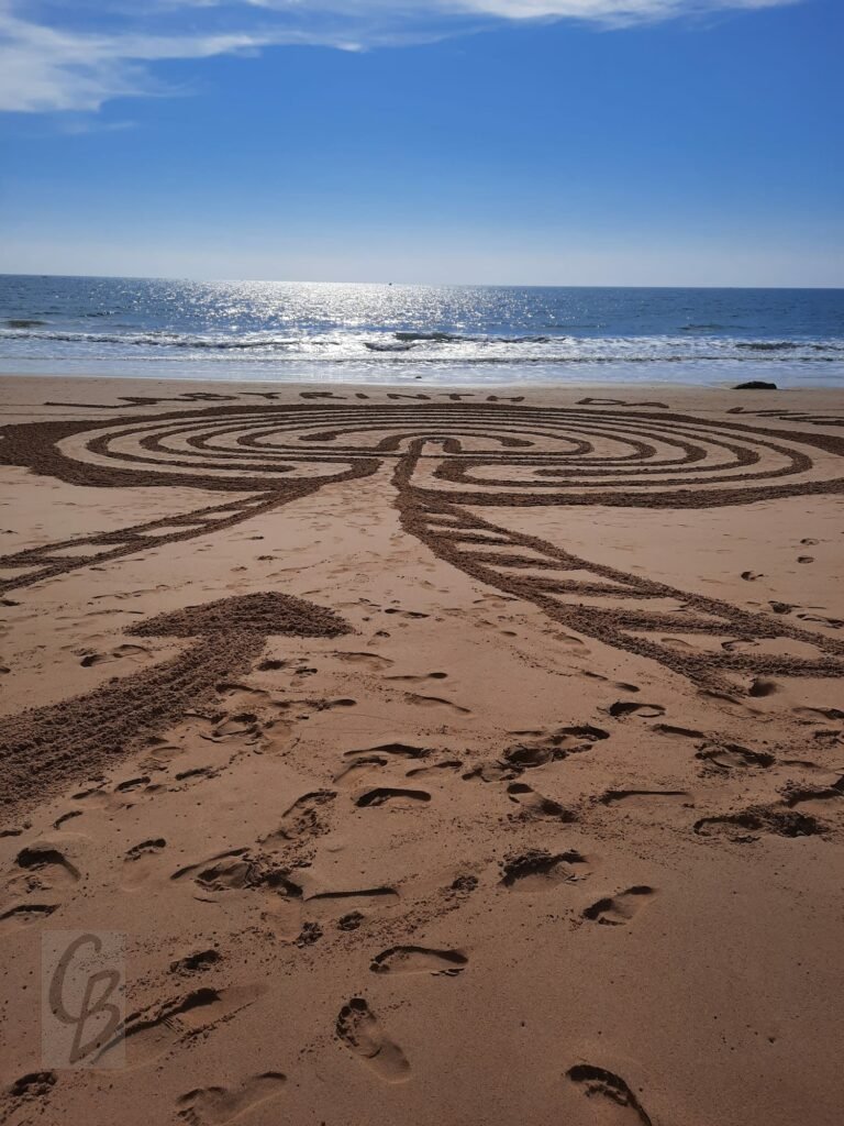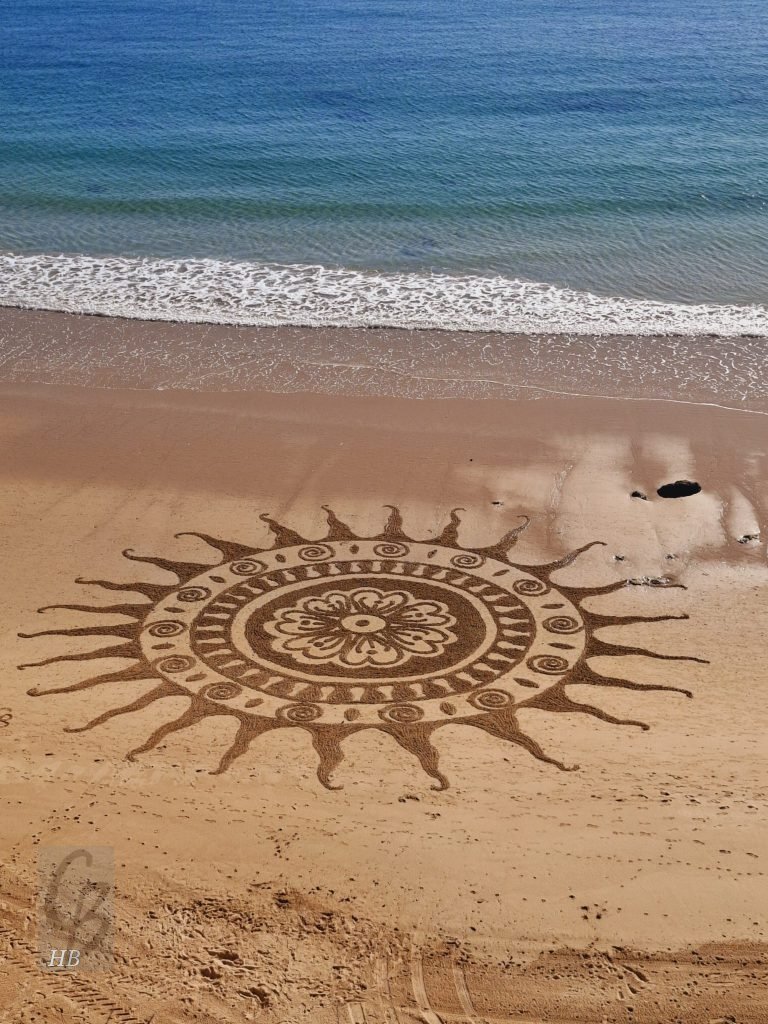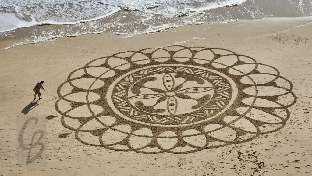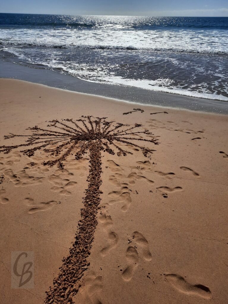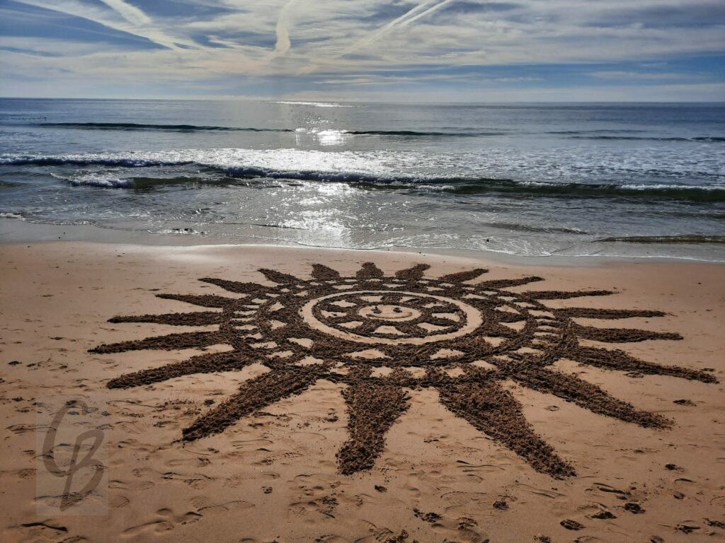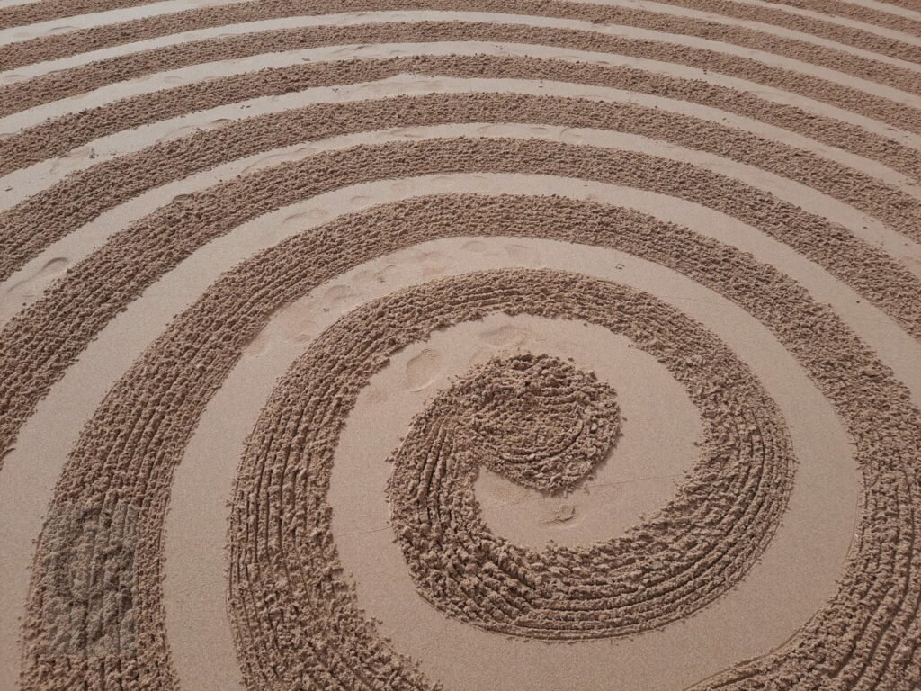 Wenn am Meer die Ebbe einsetzt und der Sand am Strand glatt gewaschen wie eine leere Leinwand da liegt, ziehe ich mit einer Garten-Harke Kreise und Formen.