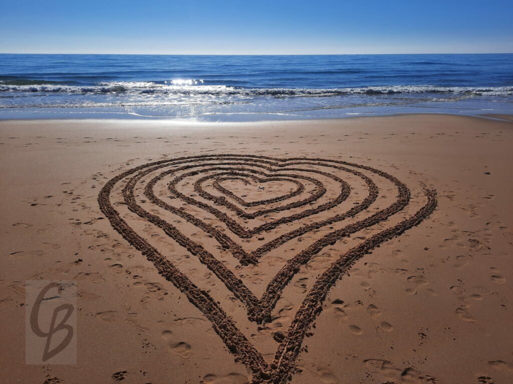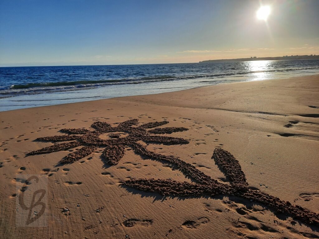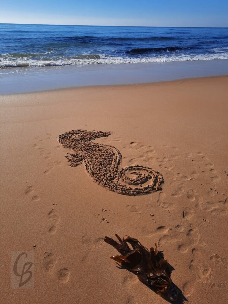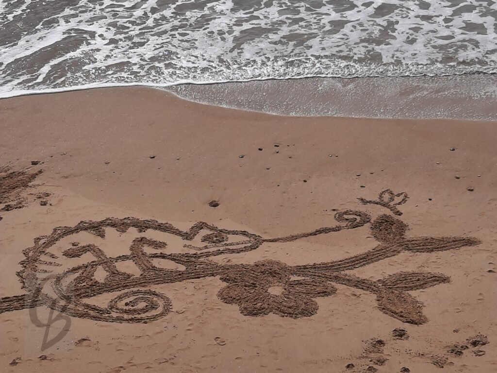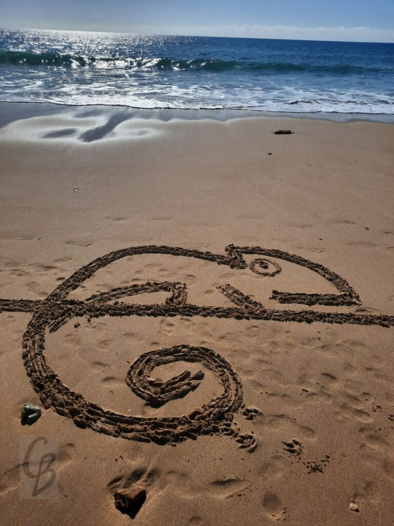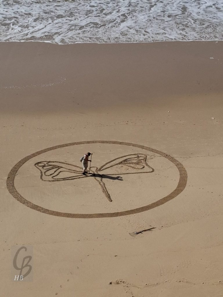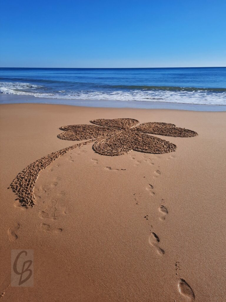 Wenn am Meer die Ebbe einsetzt und der Sand am Strand glatt gewaschen wie eine leere Leinwand da liegt, ziehe ich mit einer Garten-Harke Kreise und Formen.