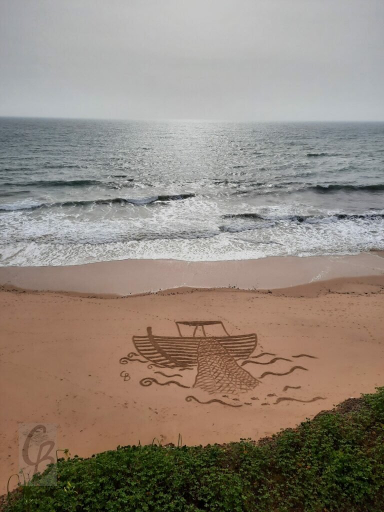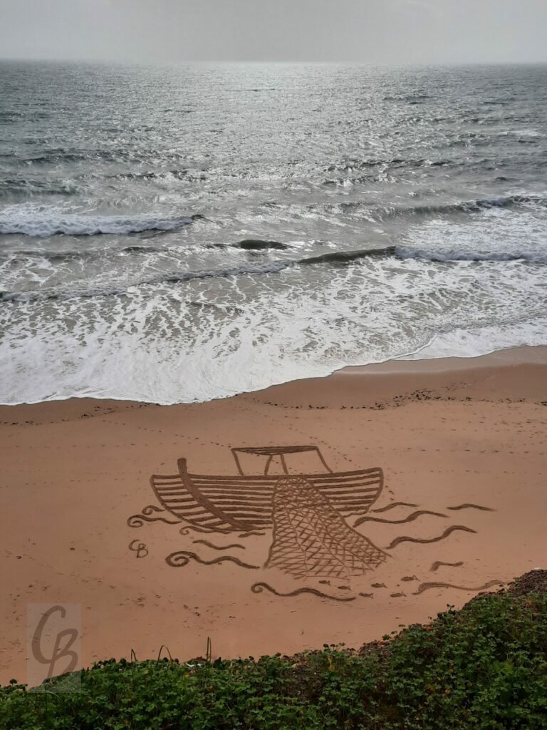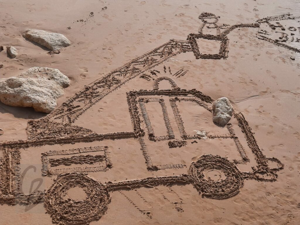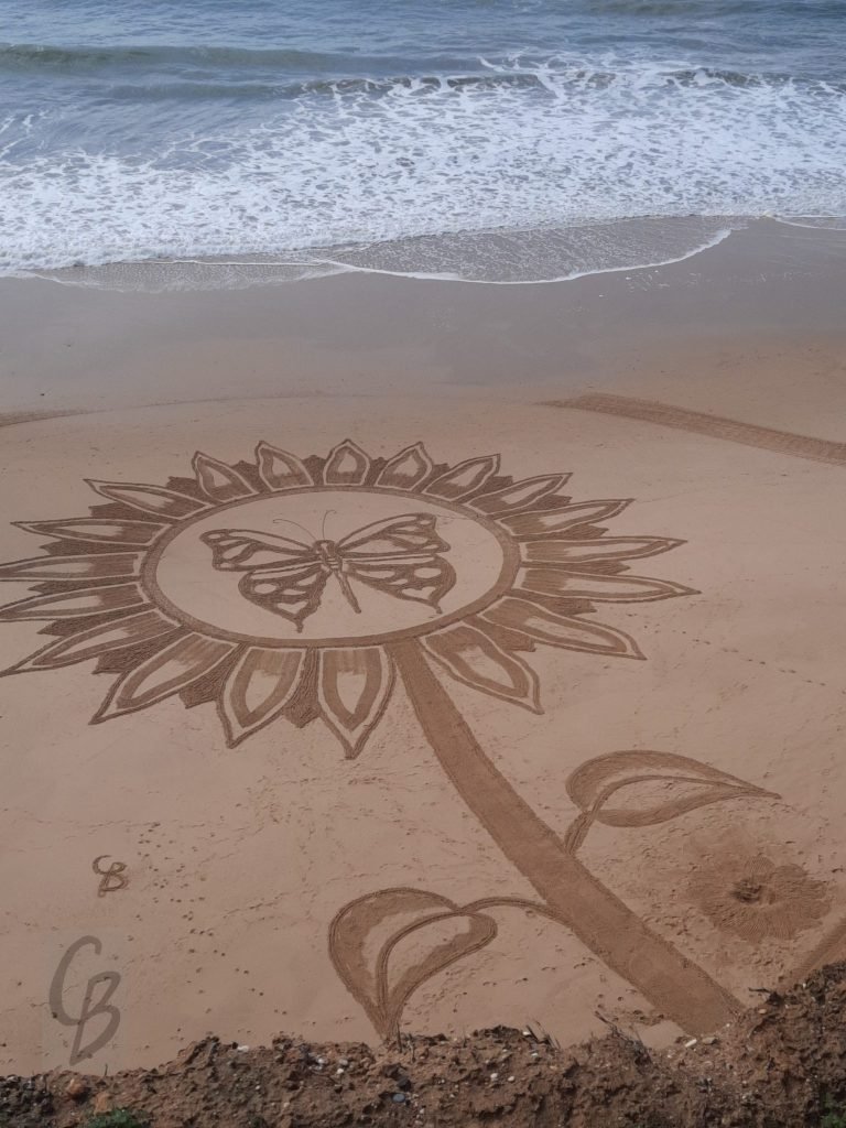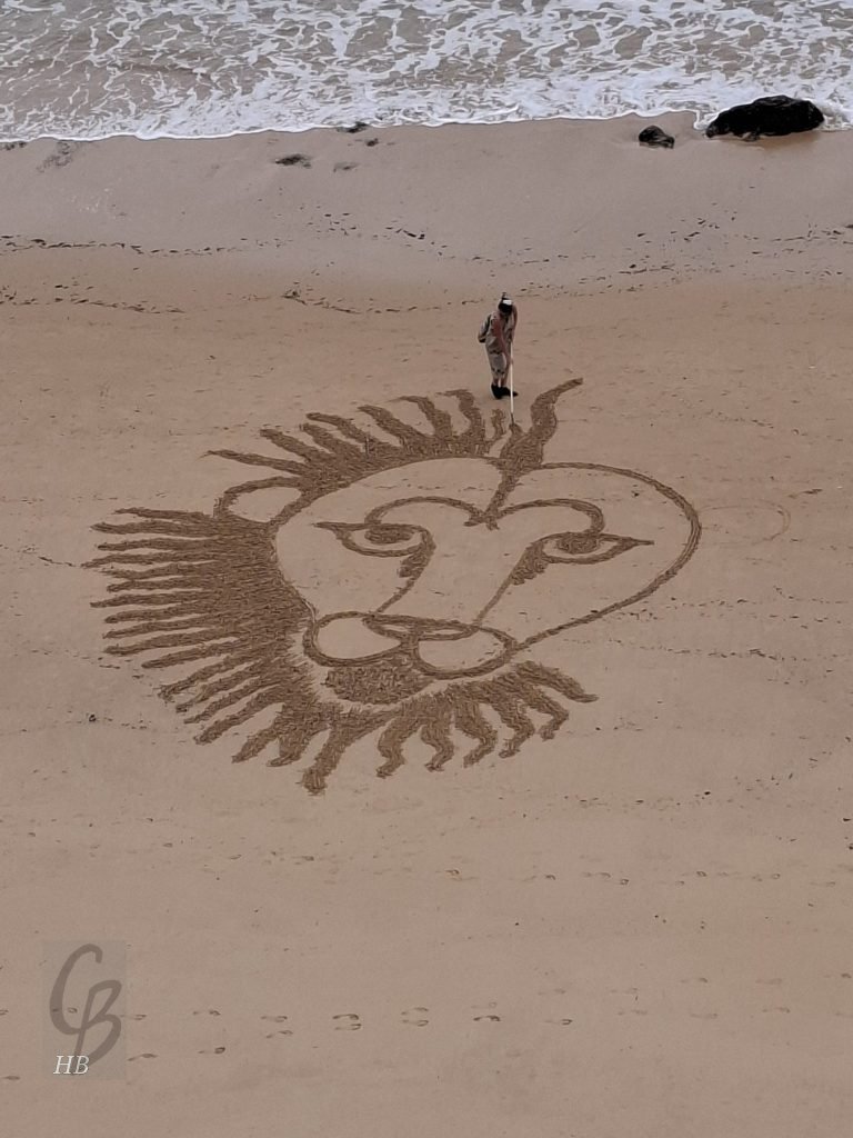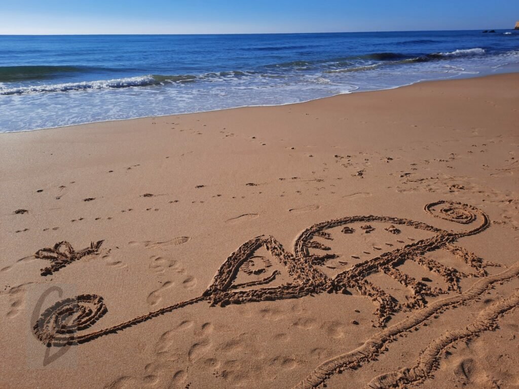 Wenn am Meer die Ebbe einsetzt und der Sand am Strand glatt gewaschen wie eine leere Leinwand da liegt, ziehe ich mit einer Garten-Harke Kreise und Formen.