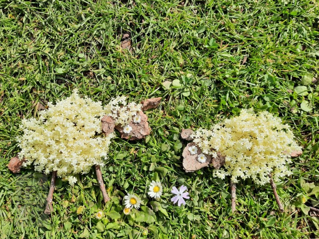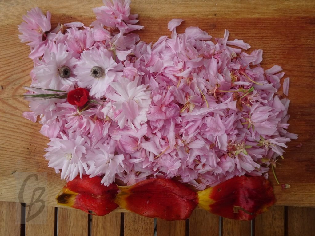 Beim Spazieren gehen mit dem Hund sammel ich Blüten und Blätter und lass Tiere entstehen…..